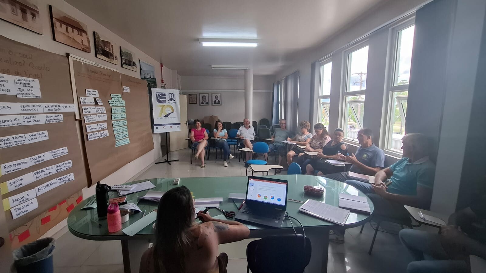 A reunião permitiu uma análise do cenário atual da Feira da Agricultura Familiar e Artesanato de Bom Princípio. Entre os pontos positivos, foram destacadas a qualidade dos produtos — orgânicos e agroecológicos —, a organização do grupo, que possui diretoria e regimento interno, e a boa relação com os consumidores. Também foram identificados os principais itens comercializados, como melado e derivados da cana, frutas, hortaliças, panificados, geleias, fitoterápicos e artesanato.
