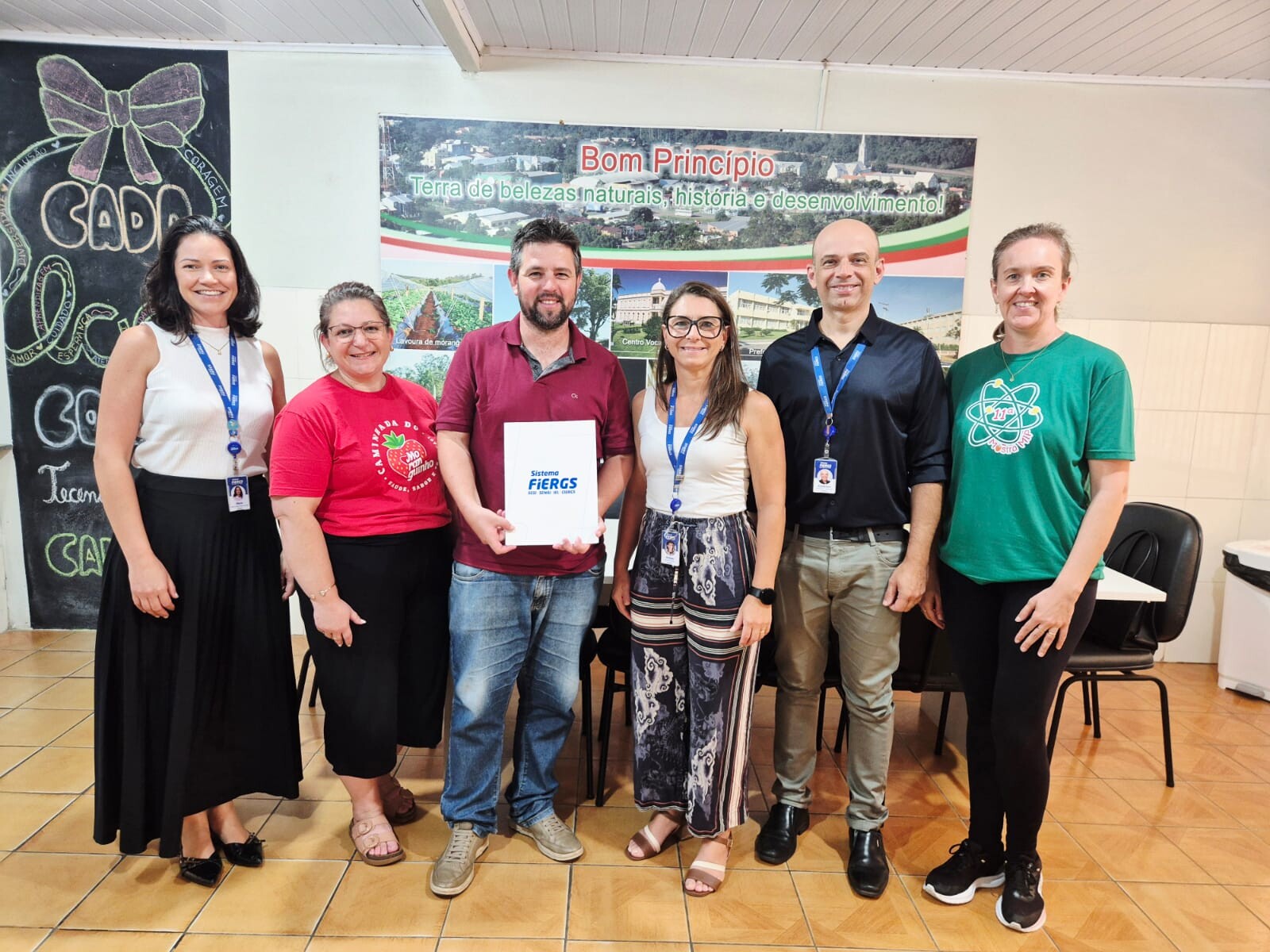 Participaram da reunião, pela secretaria, os coordenadores Angelo de Freitas, Grasiela Zimmer Vogt e Daiane Maldaner. Representando o SENAI/FIERGS, estiveram presentes a gerente de operações do SENAI, Michele Sarmento, o coordenador técnico de Educação do SENAI, Anderson Lemes, e a coordenadora pedagógica do SENAI, Maria Cristina Müller.